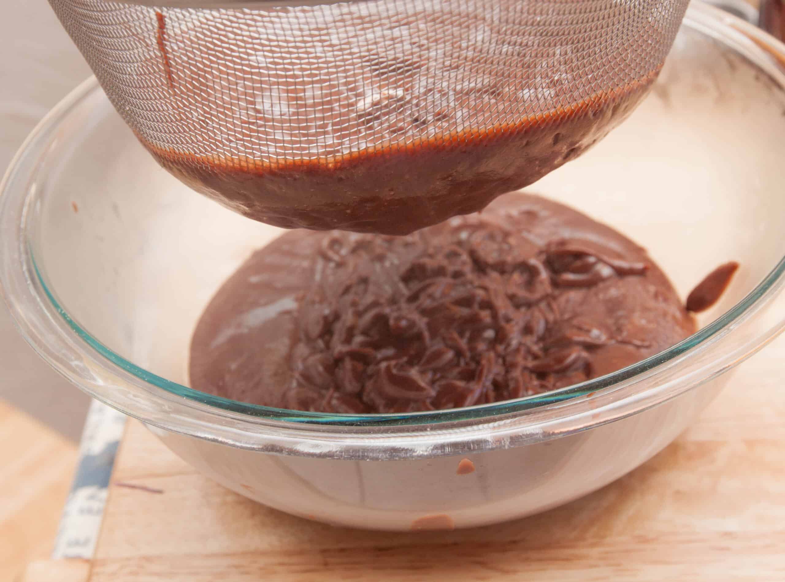 Once you get the pudding burp, it’s nearly ready. With a sieve, I poured in the sauce and let it strain into a large bowl.