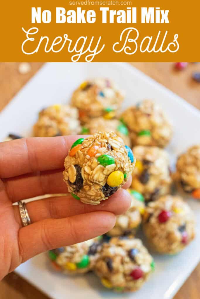 - Mini M&Ms – One of the best parts of trail mix, right? The key to these energy balls, though, is to use the Mini M&Ms because the regular-sized ones will be too big.